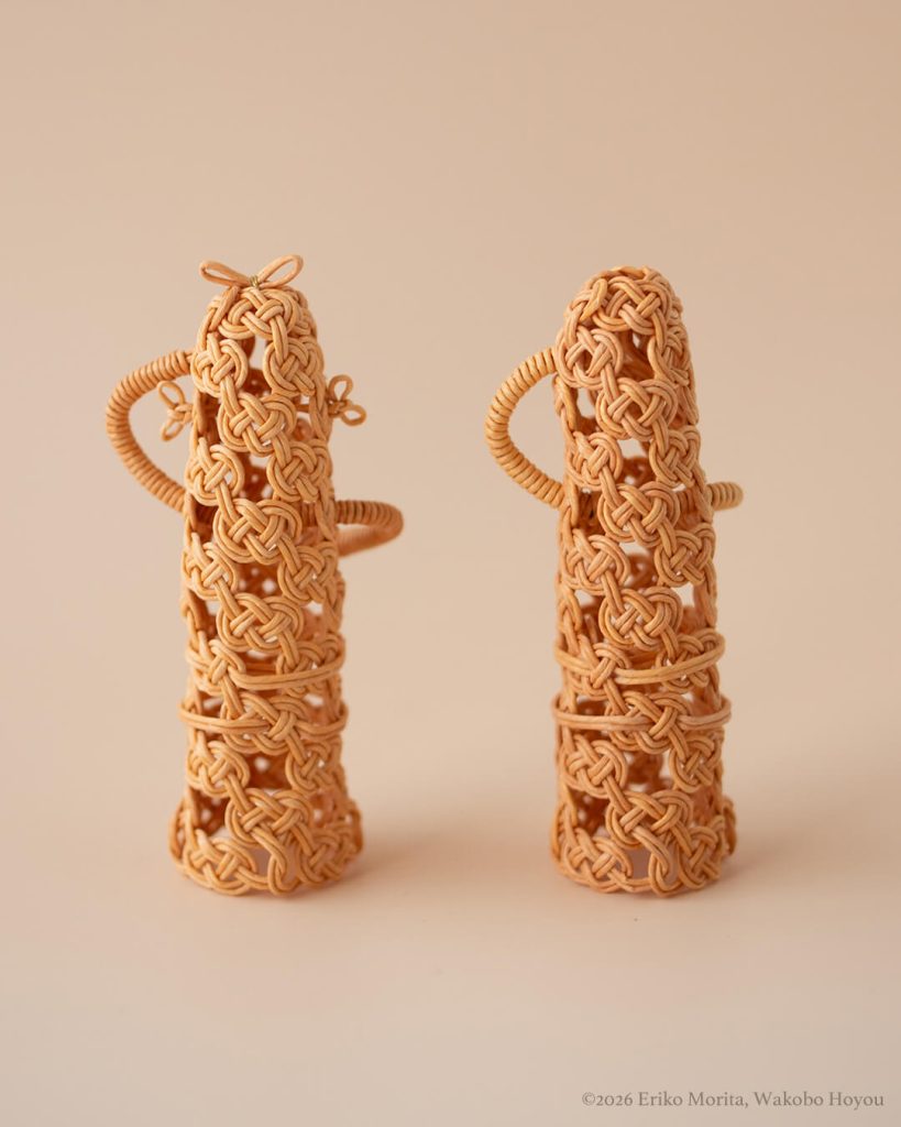 こちらは、東京国立博物館が所蔵する、踊るような姿をした2体の人物形象埴輪をモチーフに結びました。