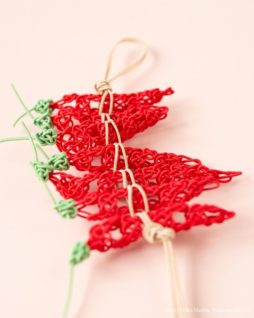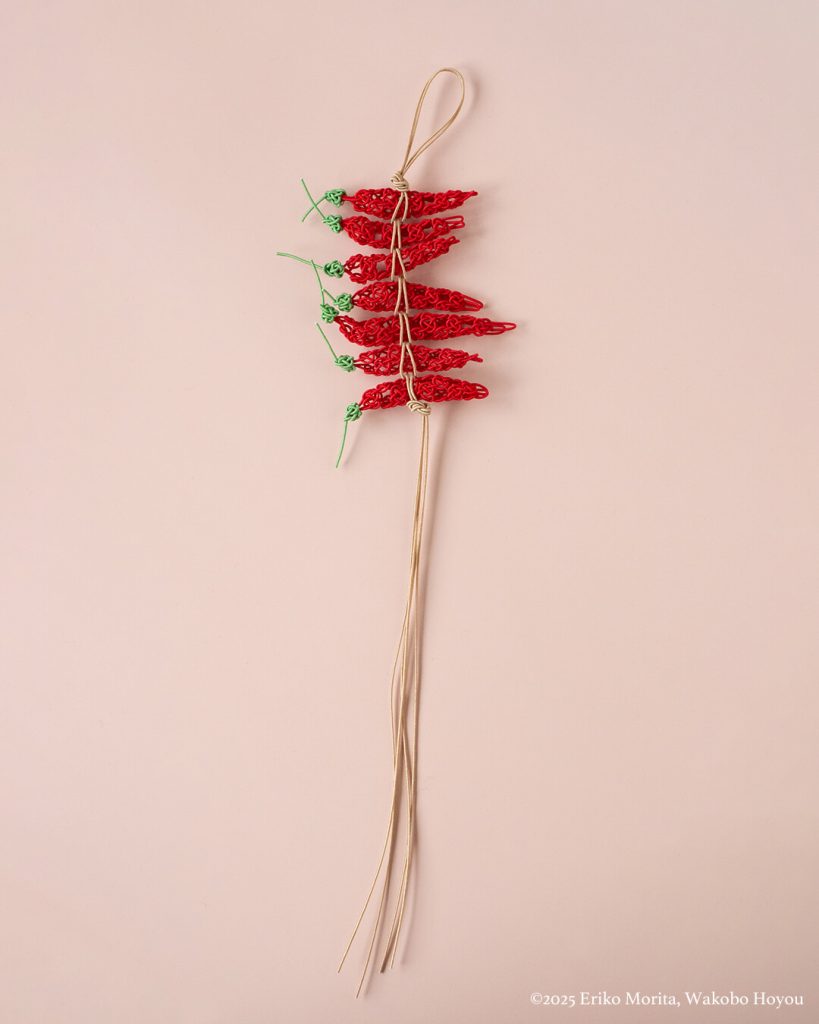 水引で結んだ唐辛子飾り。
